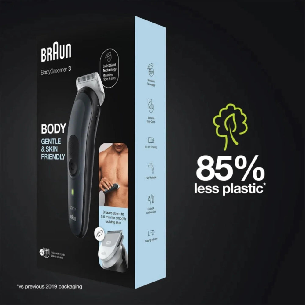 The Braun Body Groomer Series 3 BG3340 is a versatile grooming tool designed specifically for full-body care. Built with advanced trimming technology and skin protection features, it ensures safe, smooth, and precise grooming on sensitive areas such as chest, underarms, and groin. With multiple attachments, waterproof design, and ergonomic handling, it’s the ultimate body grooming solution for modern men.