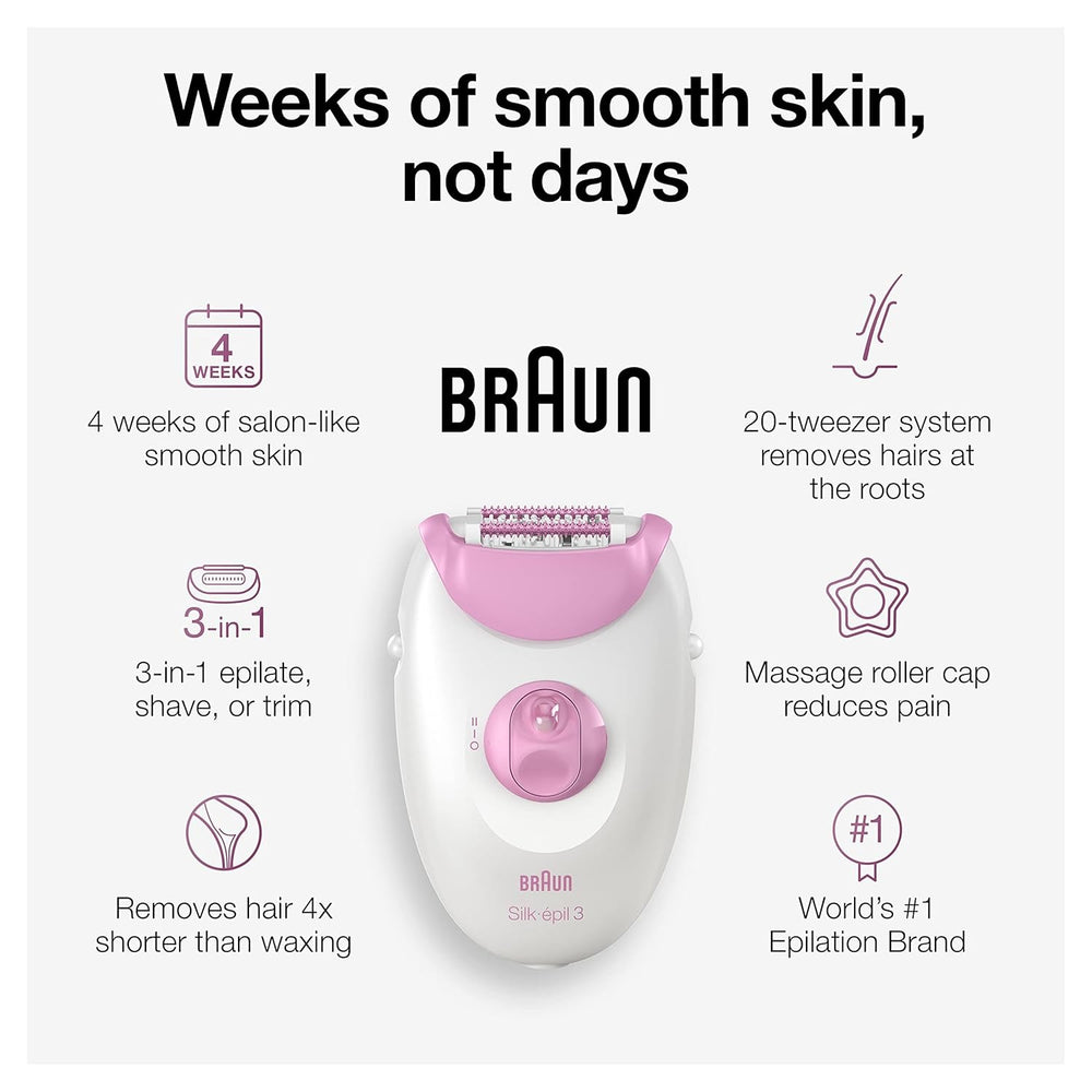 The Braun Silk-épil 3270 is a versatile 2-in-1 hair removal solution combining epilation and trimming in one device. Featuring a 20-tweezer system, it gently removes hair from the root for up to four weeks of smoothness. With massage rollers to minimize discomfort and a Smartlight to reveal even the finest hairs, this device ensures precise and efficient hair removal. The included trimmer head makes it perfect for sensitive areas and styling needs.