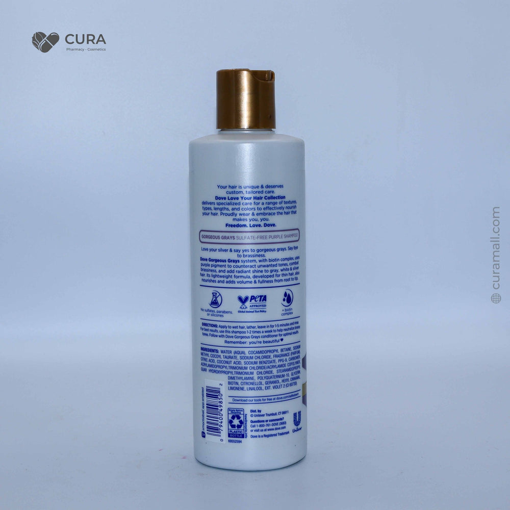 Dove Love Your Silver Sulphate Free Shampoo 400ml is specially formulated for grey, silver, and platinum hair. Enriched with violet pigments, it neutralizes unwanted yellow and brassy tones while gently cleansing without stripping natural moisture. Its sulphate-free formula helps maintain softness and shine, leaving hair vibrant, cool-toned, and radiant. Perfect for daily or weekly use to keep silver and light-colored hair fresh and luminous.