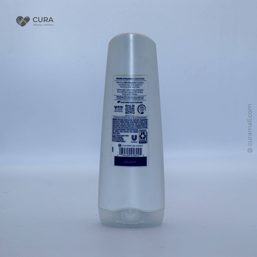 Dove Volume & Fullness Conditioner 355ml is specially formulated to give fine or flat hair a boost of body and fullness. Its lightweight, nourishing formula detangles hair, adds bounce, and enhances natural volume without weighing hair down. Perfect for daily use, this conditioner leaves hair soft, manageable, and voluminous.