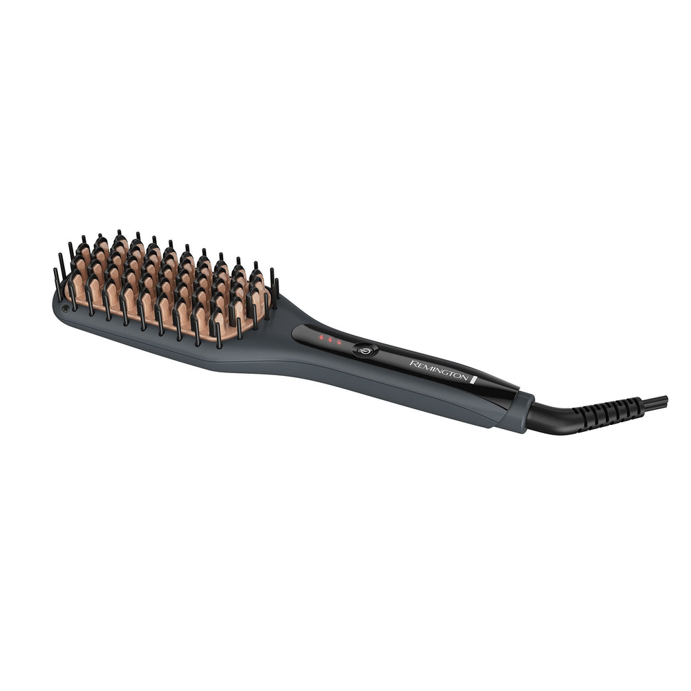 The Remington CB7400 Hair Straightening Brush combines the power of a straightener with the simplicity of a hairbrush, making styling faster and easier. Featuring Ceramic-coated bristles with anti-static technology, it tames frizz, smooths hair, and delivers natural-looking straight results in minutes. Its wide brush head covers more hair in one stroke, while multiple heat settings ensure safe use for all hair types. Perfect for everyday styling with less effort.