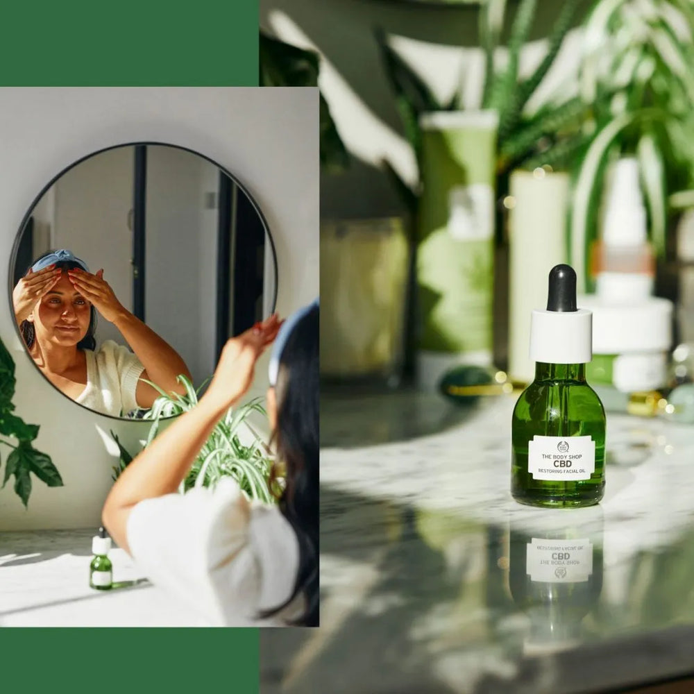 The Body Shop CBD Restoring Facial Oil is a lightweight, fast-absorbing face oil designed to nourish, restore, and soothe stressed skin. Infused with natural CBD (cannabidiol) and hemp seed oil, it helps calm dryness, replenish moisture, and leave skin looking healthier and more radiant. With its silky, non-greasy texture, this oil melts into the skin, restoring balance and comfort while supporting the skin’s natural barrier. Perfect for daily use to achieve a smooth, supple, and revitalized complexion.
