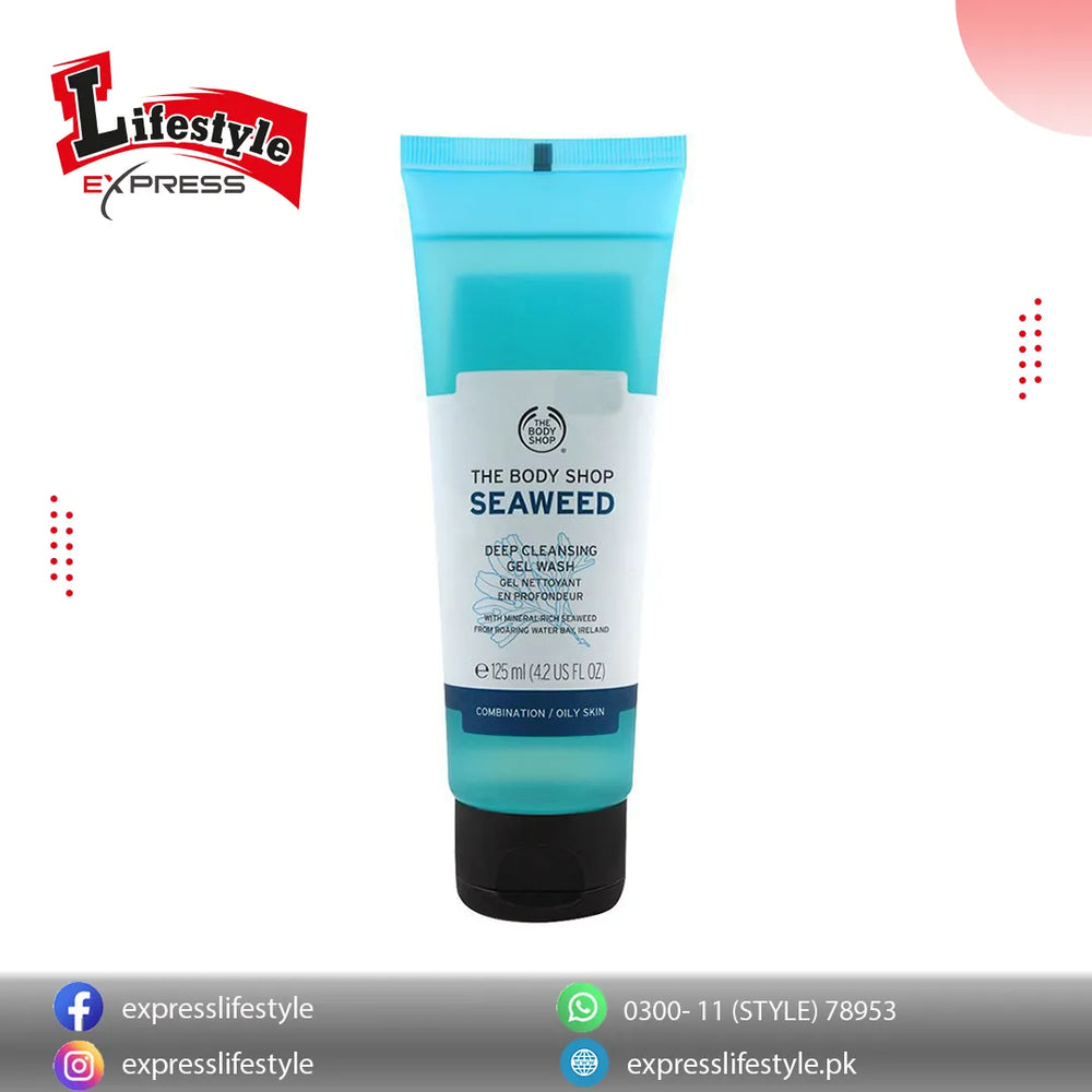 The Body Shop Seaweed Gel Wash is a refreshing, soap-free face wash formulated to gently cleanse and balance the skin. Infused with mineral-rich seaweed from Roaring Water Bay, Ireland, it effectively removes impurities, excess oil, and makeup without drying out the skin. This gel-based cleanser leaves the skin feeling fresh, clean, and shine-free, making it ideal for combination and oily skin types.